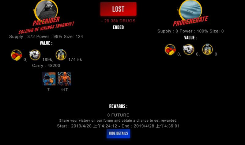 Check my latest fight ! palerider vs progenerateprogenerate (25)in #drugwars-fight • 7 years ago #gaming #fight #dw