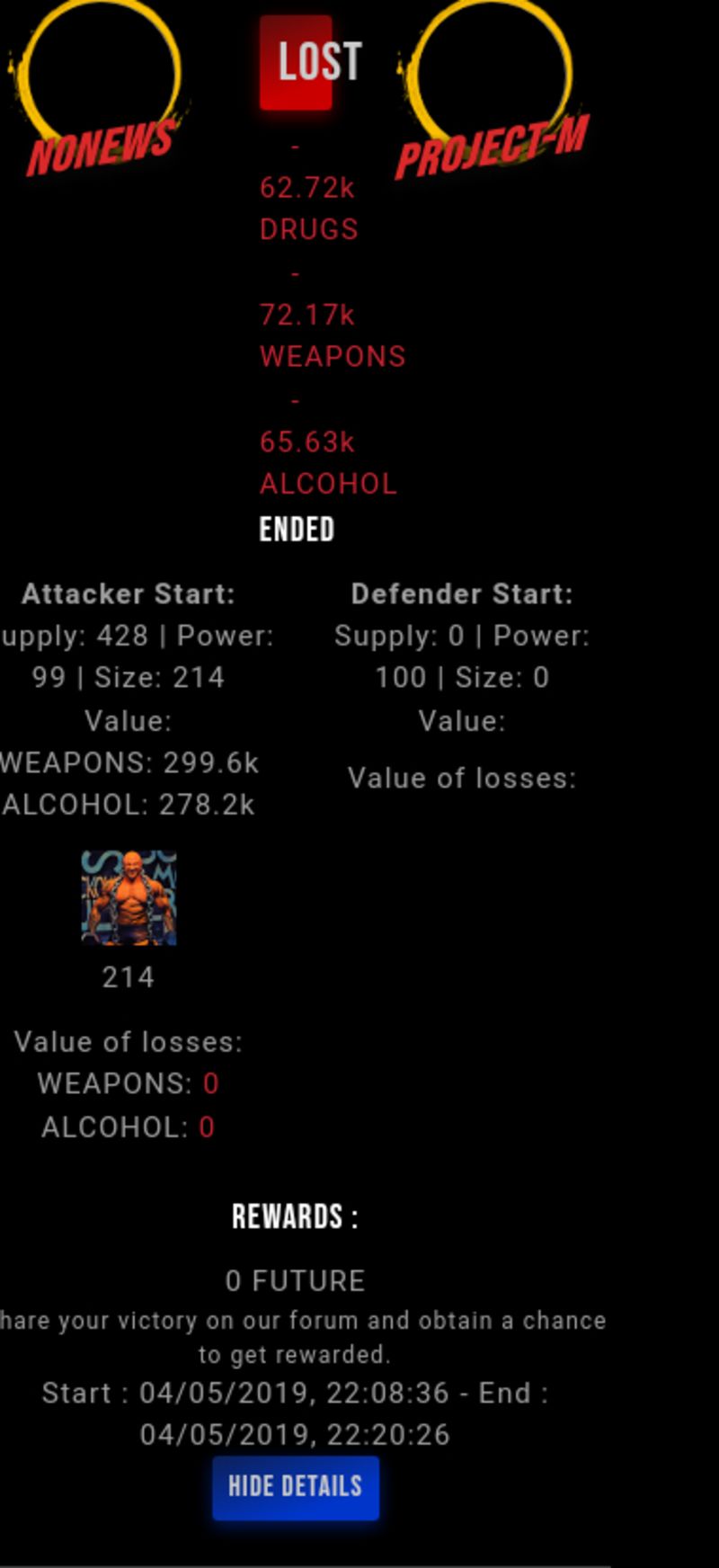 Check my latest fight ! nonews vs project-mproject-m (45)in #drugwars-fight • 7 years ago #gaming #fight #dw