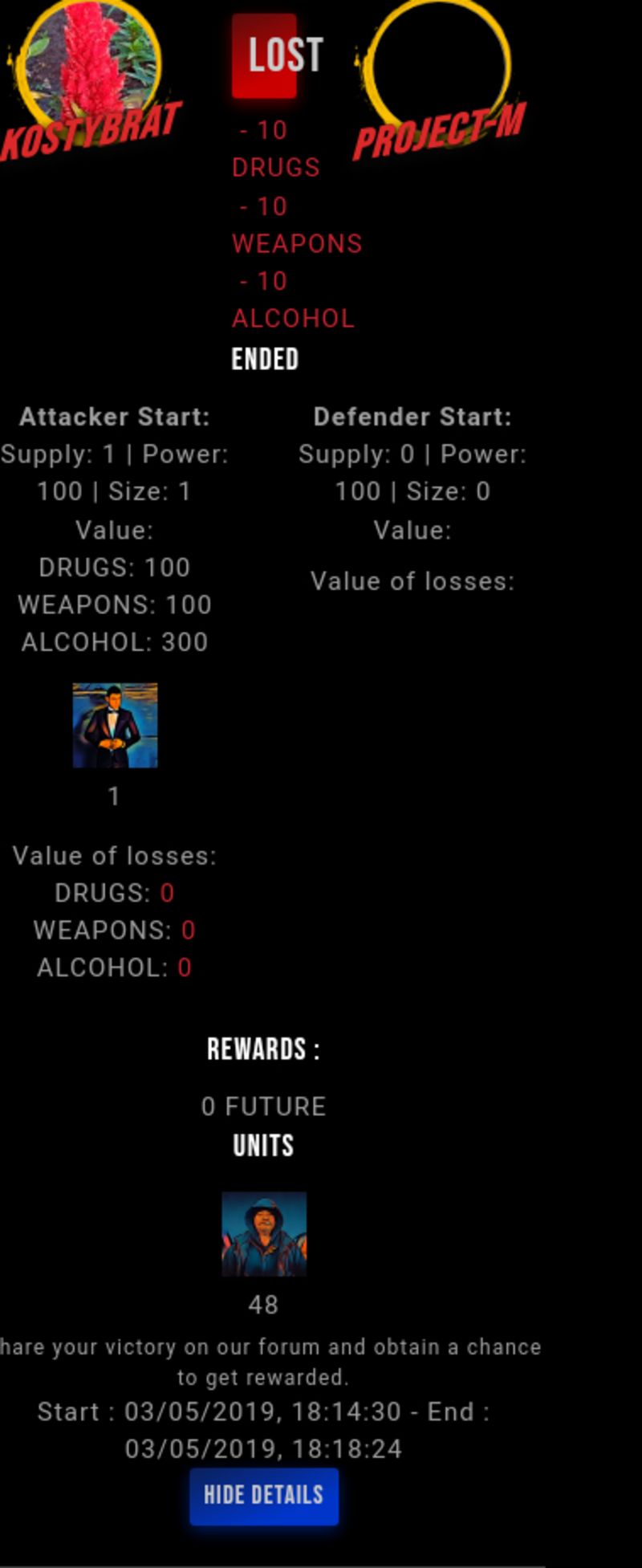 Check my latest fight ! kostybrat vs project-mproject-m (45)in #drugwars-fight • 7 years ago #gaming #fight #dw