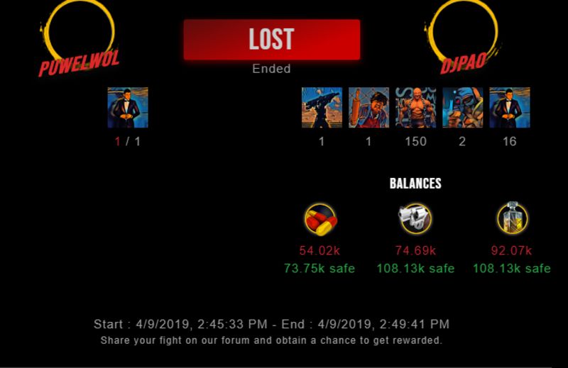 Check my latest fight ! puwelwol vs djpaopuwelwol (40)in #drugwars-fight • 7 years ago #gaming #fight #dw