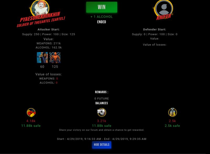 Congratulations @pyaesonekhinkhin ! Your fight received an upvote of 1.9% from the King Dealer as incentive for your activity and as a gratitude for your support to the game.