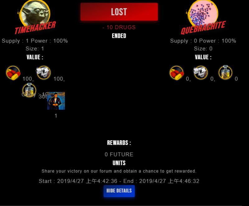 Check my latest fight ! timehacker vs quebrachitequebrachite (25)in #drugwars-fight • 7 years ago #gaming #fight #dw