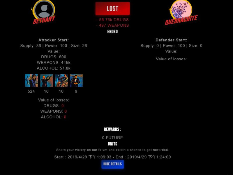 Check my latest fight ! bethany vs quebrachitequebrachite (25)in #drugwars-fight • 7 years ago #gaming #fight #dw