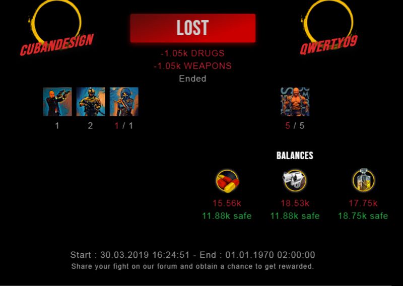 Check my latest fight ! cubandesign vs qwerty09qwerty09 (46)in #drugwars-fight • 7 years ago #gaming #fight #dw