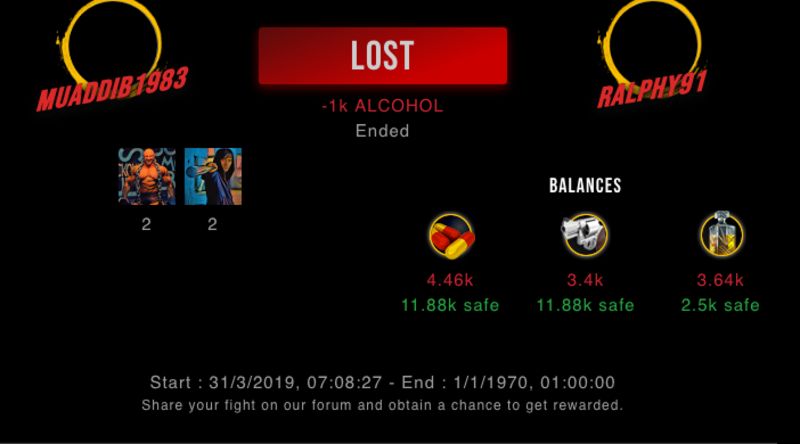 Check my latest fight ! muaddib1983 vs ralphy91ralphy91 (46)in #drugwars-fight • 7 years ago #gaming #fight #dw