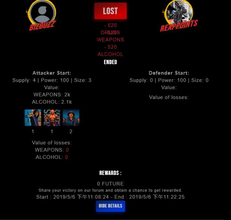 Check my latest fight ! bizbuzz vs reappointsreappoints (25)in #drugwars-fight • 7 years ago #gaming #fight #dw