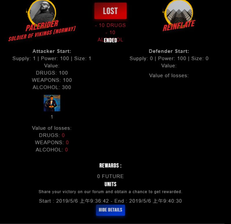 Congratulations @reinflate ! Your fight received an upvote of 10% from the Dealer as incentive for your activity and as a gratitude for your support to the game.