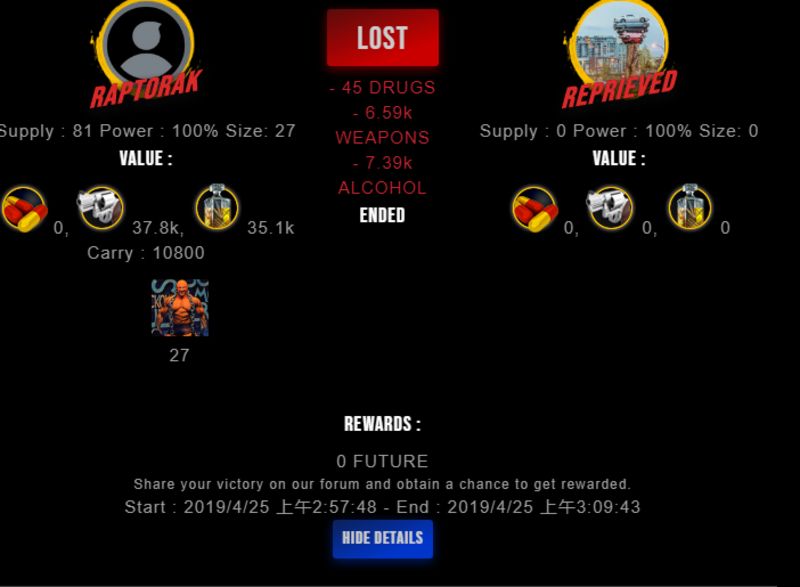 Check my latest fight ! raptorak vs reprievedreprieved (25)in #drugwars-fight • 7 years ago #gaming #fight #dw
