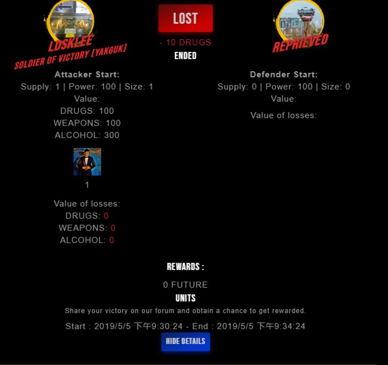 Check my latest fight ! ldsklee vs reprievedreprieved (25)in #drugwars-fight • 7 years ago #gaming #fight #dw