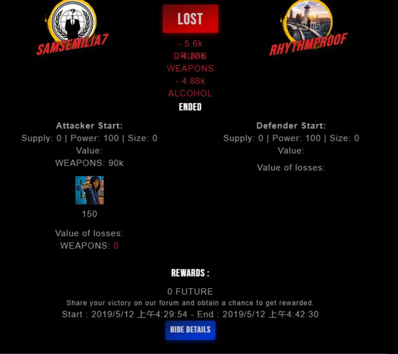 Check my latest fight ! samsemilia7 vs rhythmproofrhythmproof (25)in #drugwars-fight • 7 years ago #gaming #fight #dw