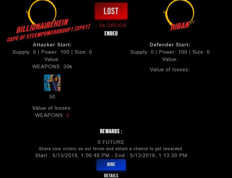 Check my latest fight ! billionairehein vs ribanriban (45)in #drugwars-fight • 7 years ago #gaming #fight #dw