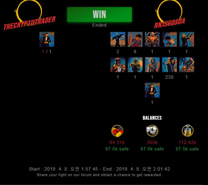 Check my latest fight ! thecryptotrader vs rnjsgosoarnjsgosoa (48)in #drugwars-fight • 7 years ago #gaming #fight #dw