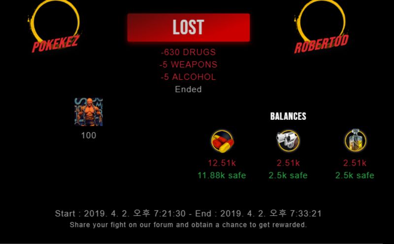 Check my latest fight ! pokekez vs robertodrobertod (44)in #drugwars-fight • 7 years ago #gaming #fight #dw