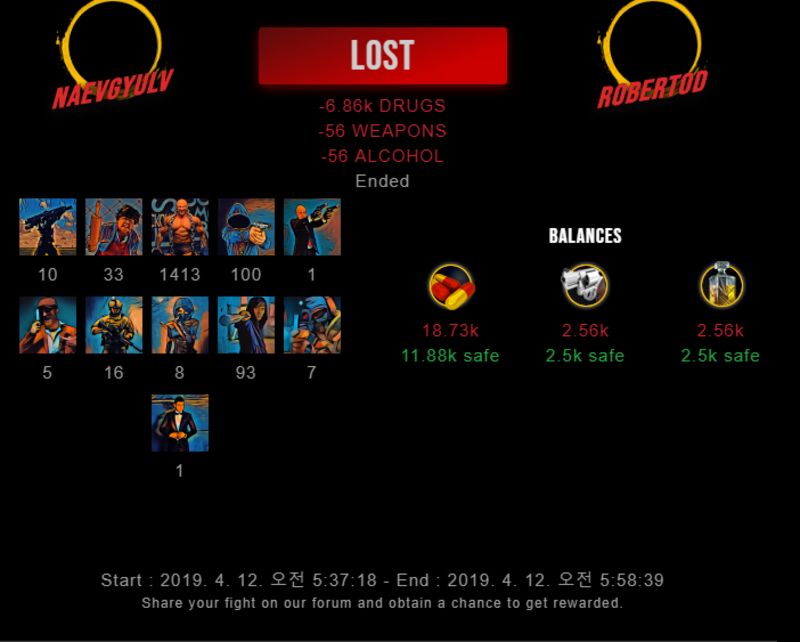 Check my latest fight ! naevgyulv vs robertodrobertod (44)in #drugwars-fight • 7 years ago #gaming #fight #dw