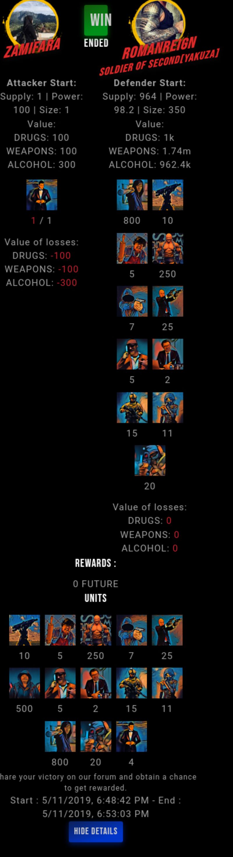 Check my latest fight ! zamifara vs romanreignromanreign (53)in #drugwars-fight • 7 years ago #gaming #fight #dw