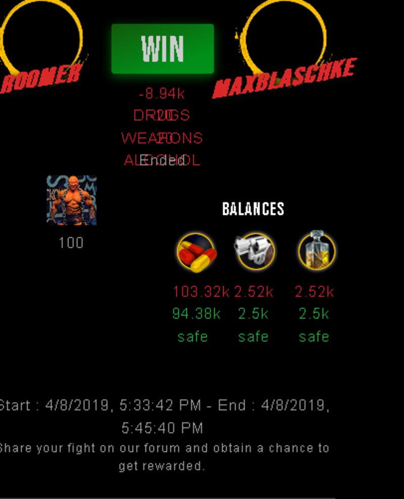 Congratulations @roomer ! Your fight received an upvote of 6% from the Dealer as incentive for your activity and as a gratitude for your support to the game.