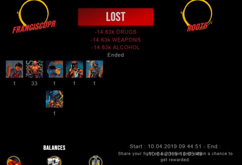 Check my latest fight ! franciscopr vs root6root6 (31)in #drugwars-fight • 7 years ago #gaming #fight #dw