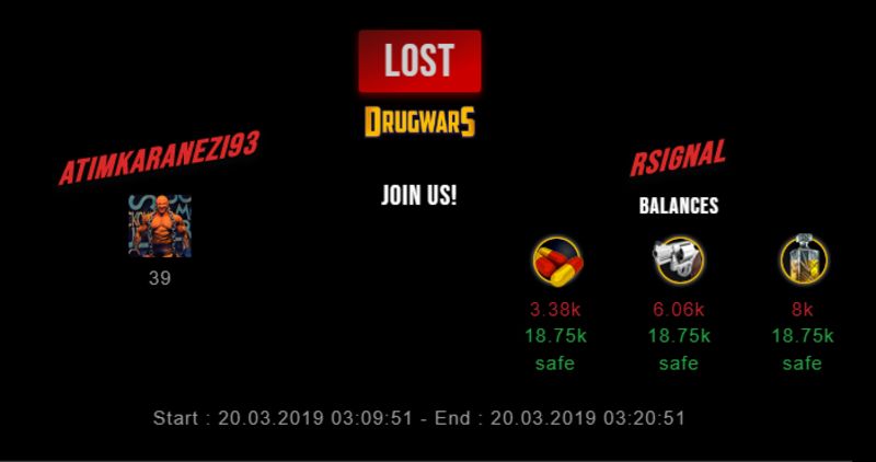 Check my latest fight ! atimkaranezi93 vs rsignalrsignal (13)in #drugwars-fight • 7 years ago #gaming #fight #dw