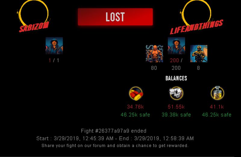 Check my latest fight ! sabizom vs lifeandthingssabizom (33)in #drugwars-fight • 7 years ago #gaming #fight #dw
