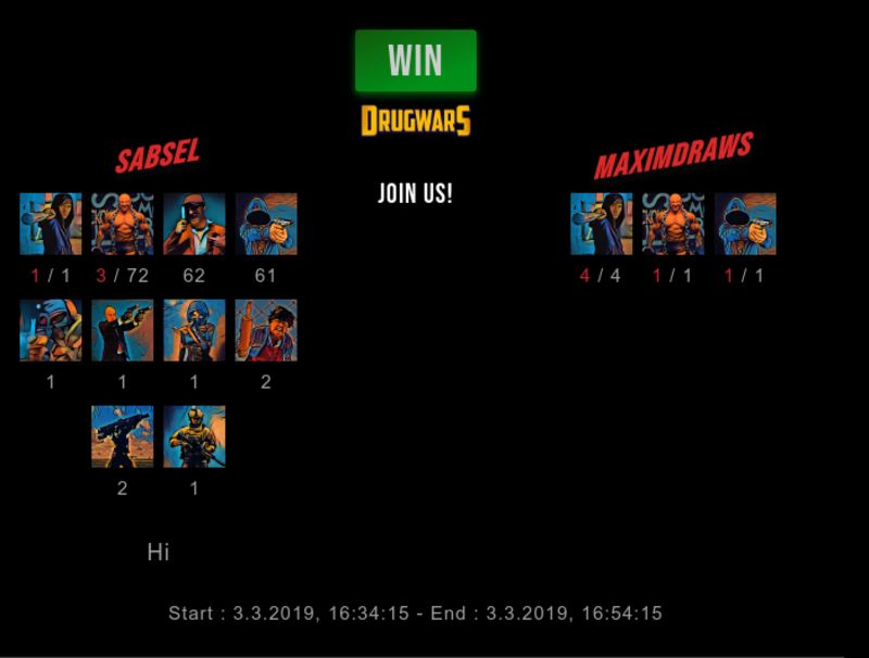 Check my latest fight ! sabsel vs maximdrawssabsel (56)in #drugwars-fight • 7 years ago #gaming #fight #dw