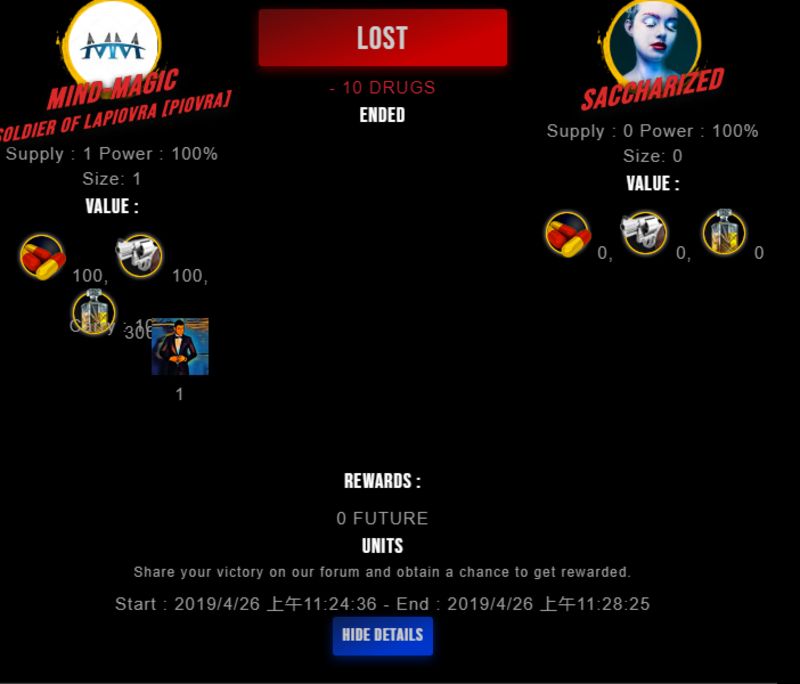 Check my latest fight ! mind-magic vs saccharizedsaccharized (27)in #drugwars-fight • 7 years ago #gaming #fight #dw