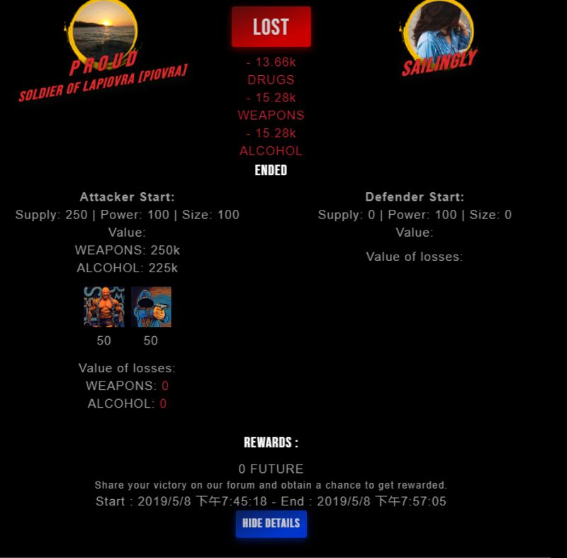 Congratulations @sailingly ! Your fight received an upvote of 10% from the Dealer as incentive for your activity and as a gratitude for your support to the game.