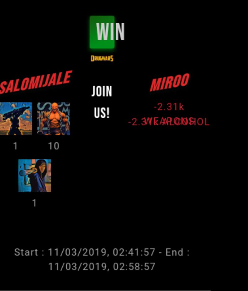 Check my latest fight ! salomijale vs miroosalomijale (41)in #drugwars-fight • 7 years ago #gaming #fight #dw