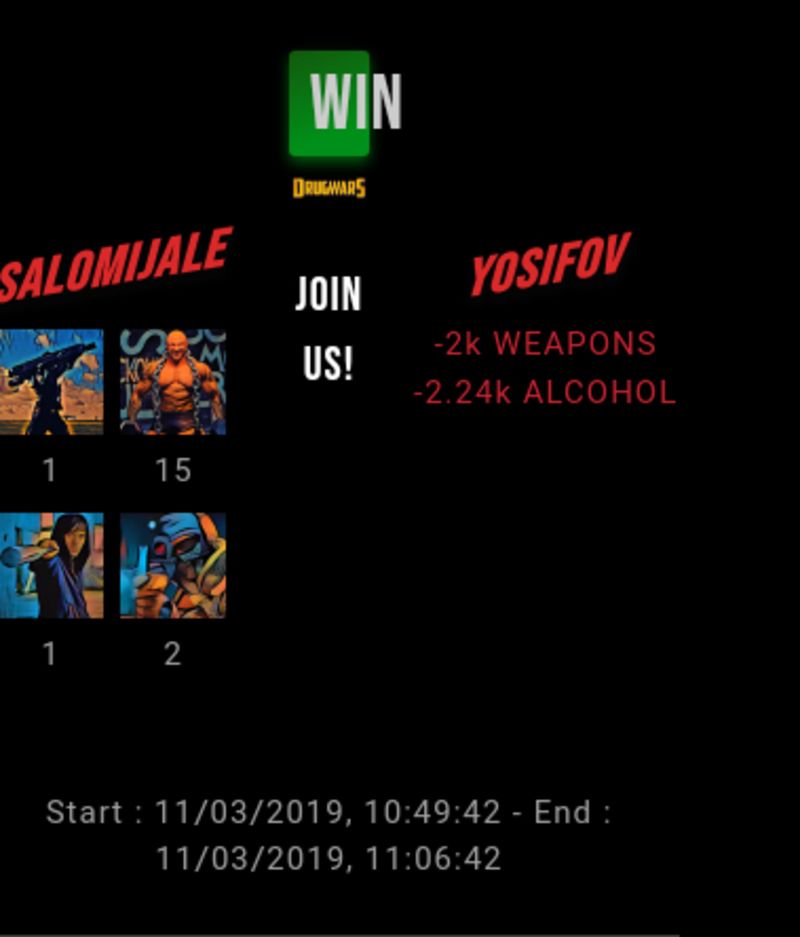Check my latest fight ! salomijale vs yosifovsalomijale (41)in #drugwars-fight • 7 years ago #gaming #fight #dw