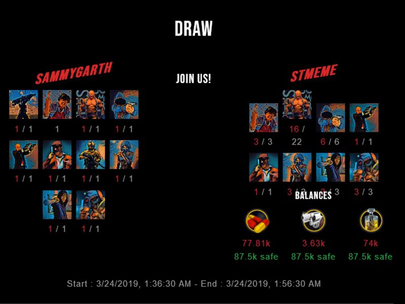 Check my latest fight ! sammygarth vs stmemesammygarth (51)in #drugwars-fight • 7 years ago #gaming #fight #dw