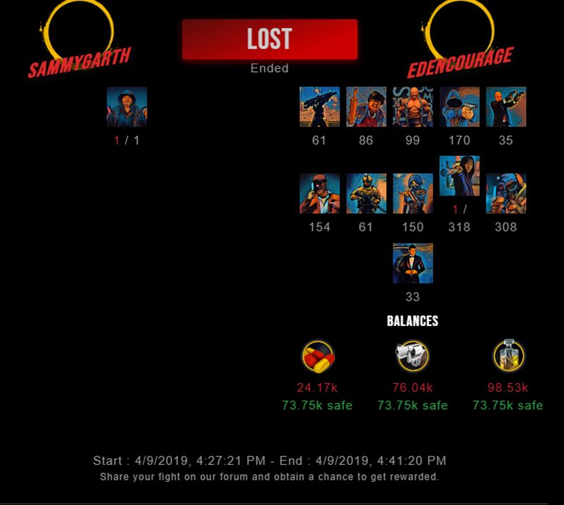 Check my latest fight ! sammygarth vs edencouragesammygarth (51)in #drugwars-fight • 7 years ago #gaming #fight #dw