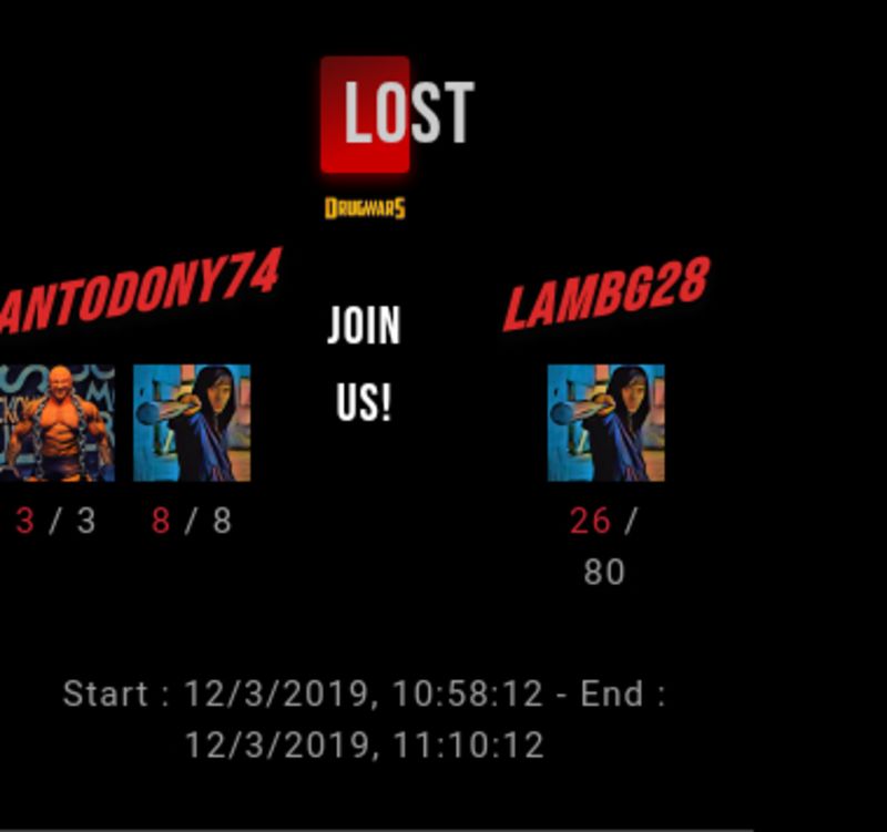 Check my latest fight ! santodony74 vs lambg28santodony74 (36)in #drugwars-fight • 7 years ago #gaming #fight #dw