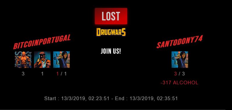 Check my latest fight ! bitcoinportugal vs santodony74santodony74 (36)in #drugwars-fight • 7 years ago #gaming #fight #dw