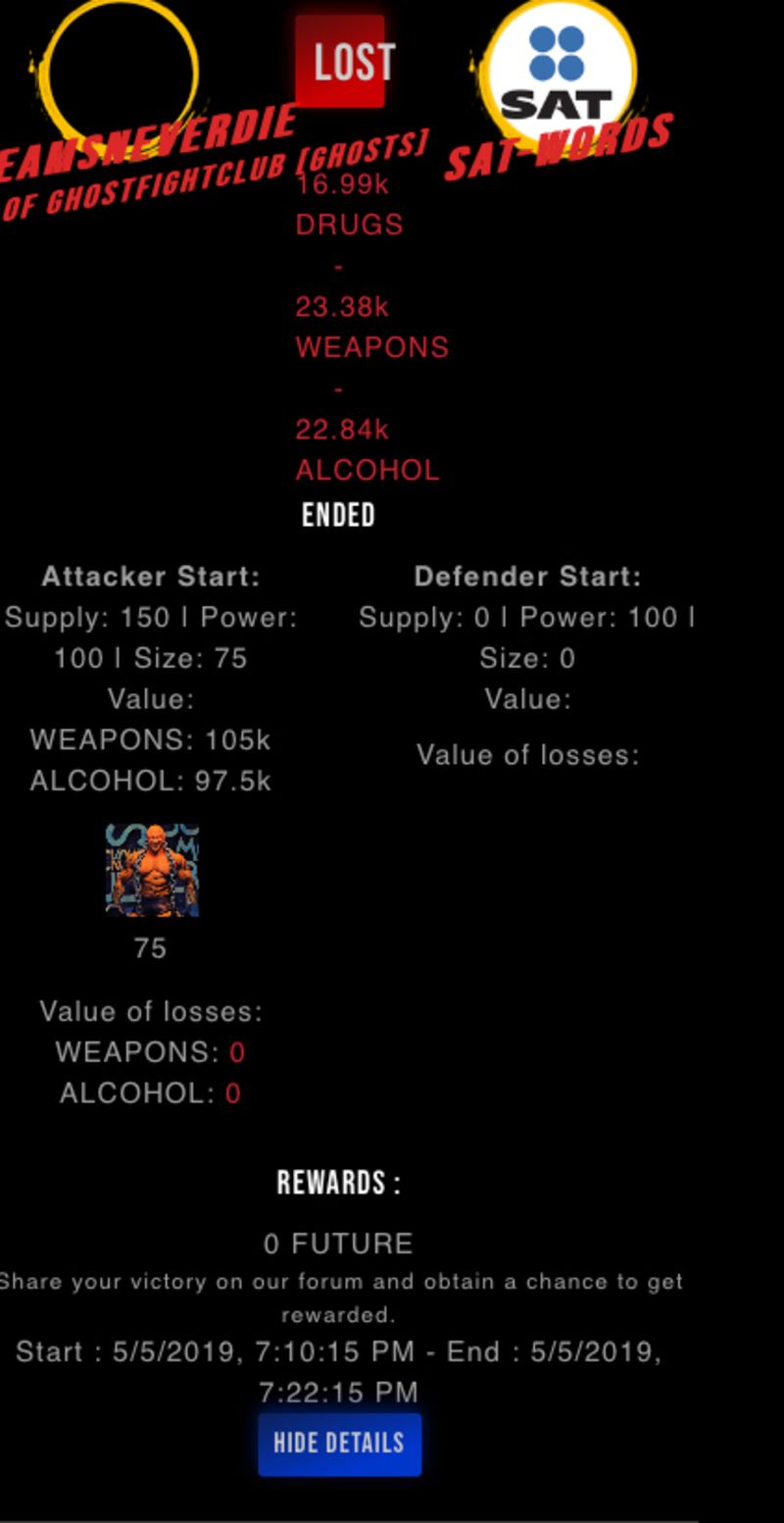Check my latest fight ! dreamsneverdie vs sat-wordssat-words (59)in #drugwars-fight • 7 years ago #gaming #fight #dw