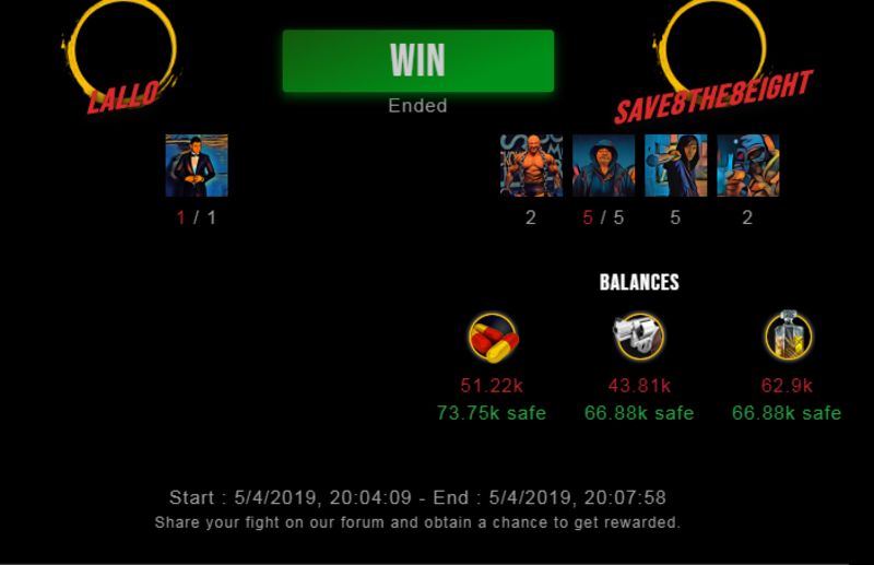 Congratulations @save8the8eight ! Your fight received an upvote of 5% from the Dealer as incentive for your activity and as a gratitude for your support to the game.