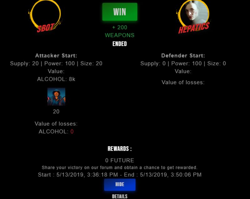 Congratulations @sbot ! Your fight received an upvote of 2.4% from the King Dealer as incentive for your activity and as a gratitude for your support to the game.