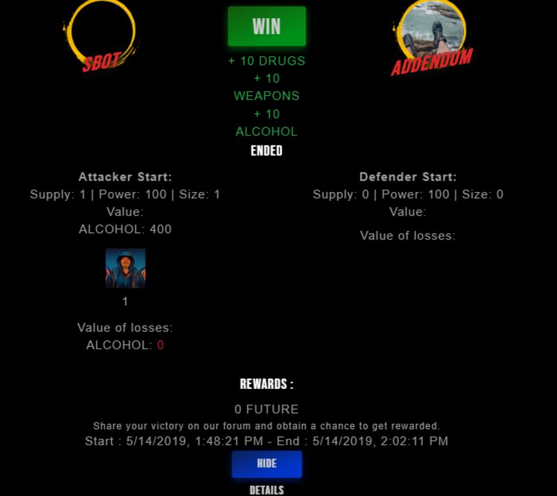 Congratulations @sbot ! Your fight received an upvote of 2.4% from the King Dealer as incentive for your activity and as a gratitude for your support to the game.