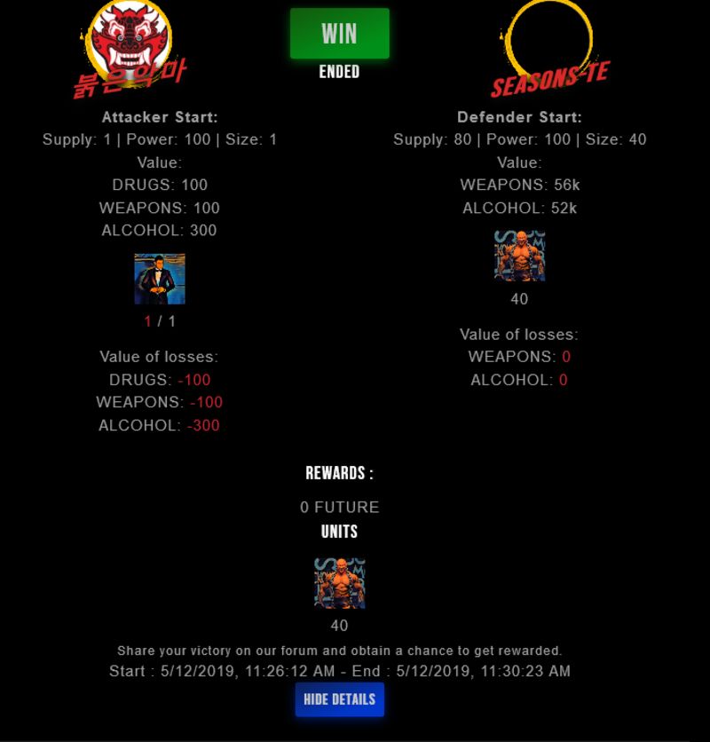 Check my latest fight ! 붉은악마 vs seasons-teseasons-te (35)in #drugwars-fight • 7 years ago #gaming #fight #dw