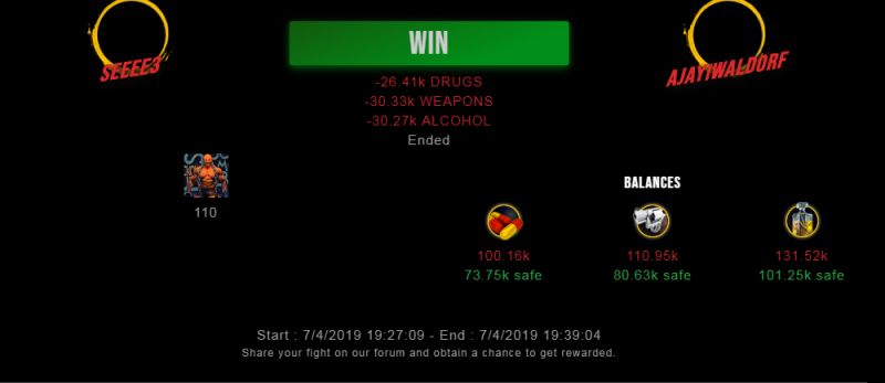 Check my latest fight ! seeee3 vs ajayiwaldorfseeee3 (42)in #drugwars-fight • 7 years ago #gaming #fight #dw