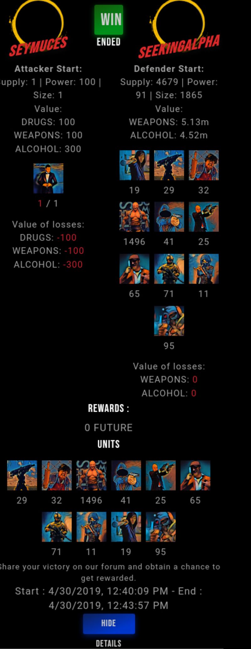Check my latest fight ! seymuces vs seekingalphaseekingalpha (43)in #drugwars-fight • 7 years ago #gaming #fight #dw