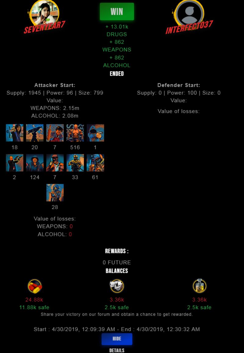 Check my latest fight ! sevenyear7 vs interfecto37sevenyear7 (56)in #drugwars-fight • 7 years ago #gaming #fight #dw