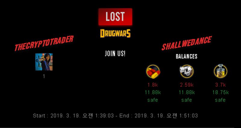 Check my latest fight ! thecryptotrader vs shallwedanceshallwedance (31)in #drugwars-fight • 7 years ago #gaming #fight #dw