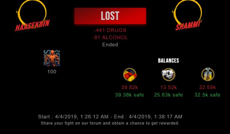 Check my latest fight ! haasekbin vs shammishammi (43)in #drugwars-fight • 7 years ago #gaming #fight #dw