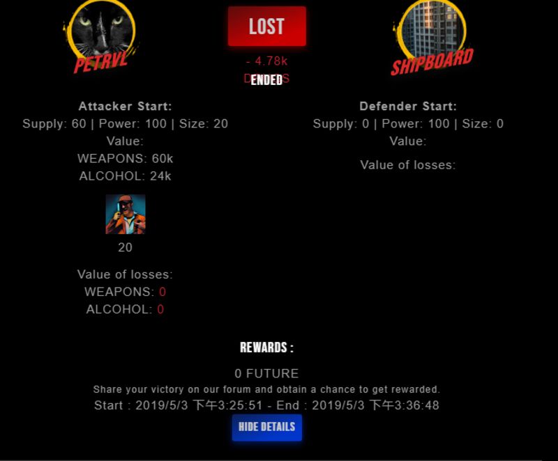 Congratulations @shipboard ! Your fight received an upvote of 10% from the Dealer as incentive for your activity and as a gratitude for your support to the game.