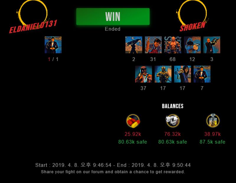 Check my latest fight ! eldaniel0131 vs shokenshoken (51)in #drugwars-fight • 7 years ago #gaming #fight #dw