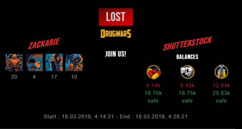 Check my latest fight ! zackarie vs shutterstockshutterstock (25)in #drugwars-fight • 7 years ago #gaming #fight #dw