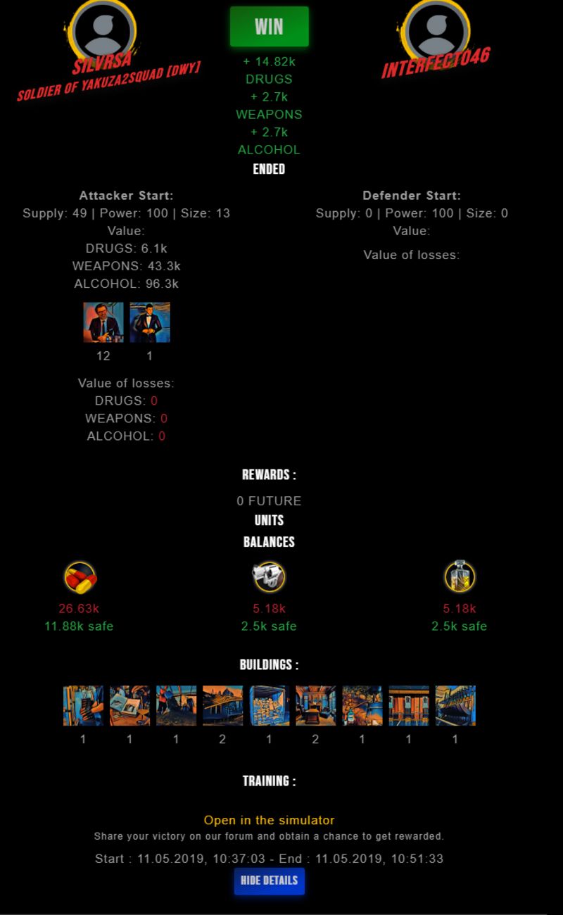 Check my latest fight ! silvrsa vs interfecto46silviursa (59)in #drugwars-fight • 7 years ago #gaming #fight #dw
