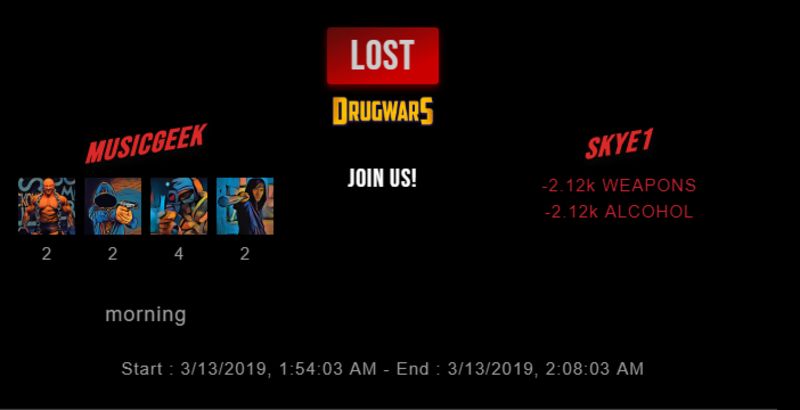 Check my latest fight ! musicgeek vs skye1skye1 (51)in #drugwars-fight • 7 years ago #gaming #fight #dw