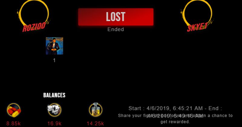 Congratulations @skye1 ! Your fight received an upvote of 5% from the Dealer as incentive for your activity and as a gratitude for your support to the game.