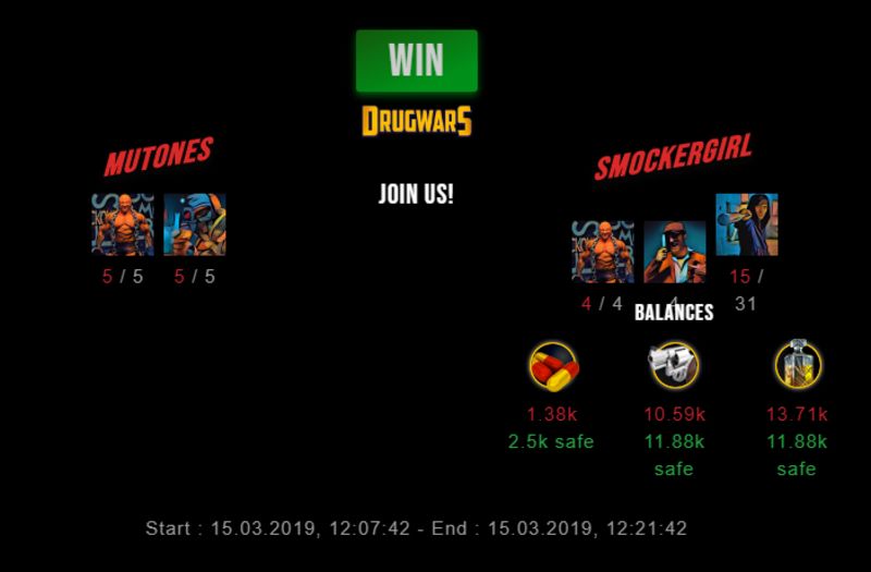 Check my latest fight ! mutones vs smockergirlsmockergirl (19)in #drugwars-fight • 7 years ago #gaming #fight #dw