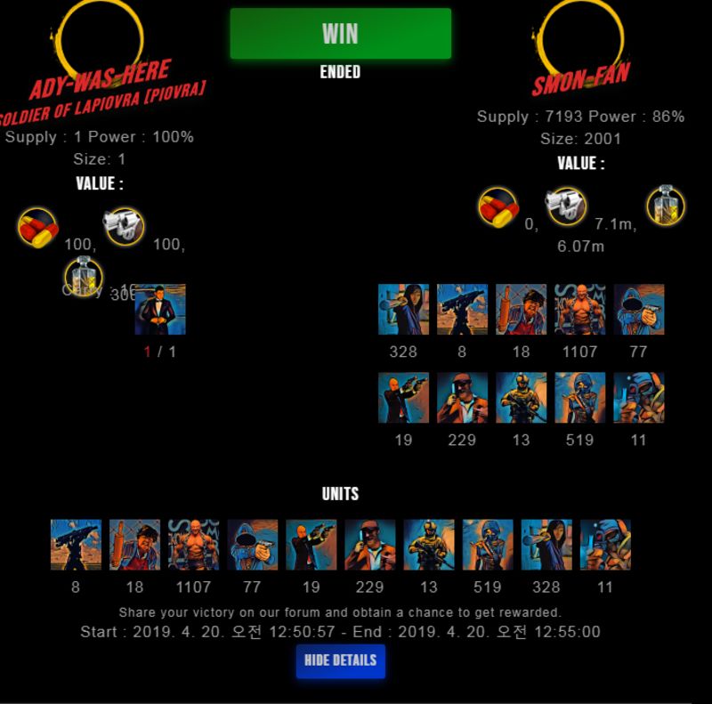 Check my latest fight ! ady-was-here vs smon-fansmon-fan (50)in #drugwars-fight • 7 years ago #gaming #fight #dw